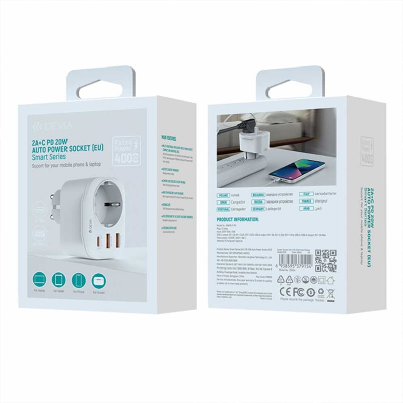 معرفی شارژر دیواری سوکت دار Devia Smart Series 2A+C PD 20W Auto Power Socket (EU)
