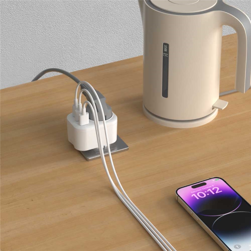دارای دو پورت USB-A و یک پورت USB-C است که امکان شارژ همزمان چند دستگاه را فراهم میکند. این ویژگی به شما این امکان را میدهد که بدون نیاز به چندین شارژر، چند دستگاه را به صورت همزمان شارژ کنید.