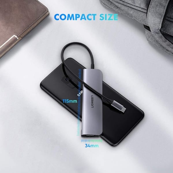 بدنه سبک و جمع و جور هاب USB-C یوگرین مدل CM136، حمل و نقل آن را آسان میکند و میتوانید به راحتی آن را در کیف خود قرار دهید.