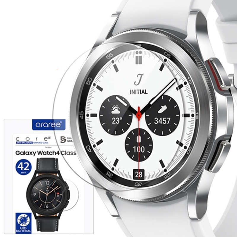 Araee یکی از برند های با کیفیت در زمینه تولید لوازم جانبی بوده که متعلق به کشور کره جنوبی می باشد. همانطور که می دانید ظاهر ساعت هوشمند از اهمیت بالایی برخوردار است و اگر به صفحه ی آن آسیب وارد شود علاوه بر از بین رفتن زیبایی ، احتمال این هم وجود دارد که عملکرد ساعت هم مورد هدف قرار بگیرد.محافظ صفحه نمایش Core H Plus از جنس شیشه بوده و دارای ویژگی هایی نظیر Anti Bacterial به همراه برش های دقیق می باشد که این گلس را کاملا مناسب جهت استفاده بر روی این مدل از ساعت هوشمند کرده است، همچنین توجه داشته باشید که بعد از نصب گلس کیفیت صفحه نمایش حفظ شده و هنگام کار با آن احساس راحتی خواهید داشت. داخل بسته بندی محافظ صفحه نمایش Araree ساعت سامسونگ Galaxy Watch 4 Classic 42mm سامسونگ نیز یک پد تمیز کننده در کنار برچسب مخصوص جهت برداشتن پرز های زیر صفحه قرار داده شده است.