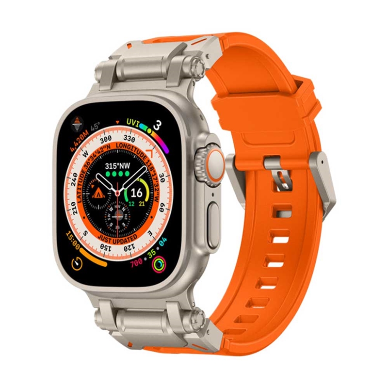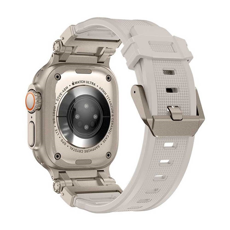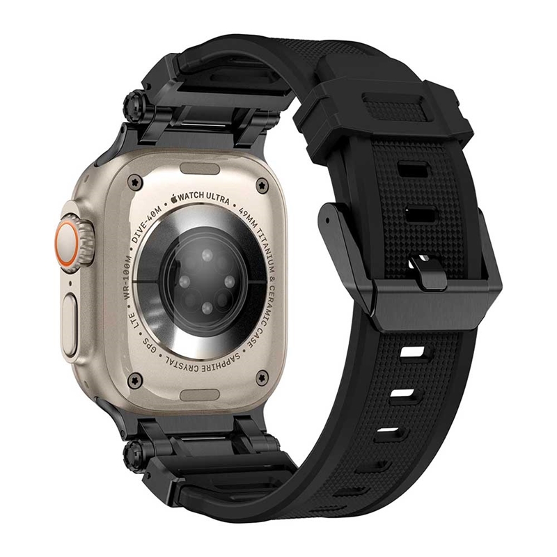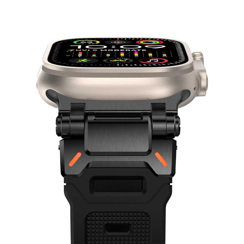این بند دارای اتصالات و سگکهایی از جنس استیل ضد زنگ دریایی درجه ۳۱۶ است که به راحتی و بدون نیاز به تنظیمات پیچیده، به ساعت شما متصل میشود. این اتصالات در دو رنگ تیتانیوم و مشکی عرضه میشوند که با اپل واچ اولترا شما هماهنگی دارند.