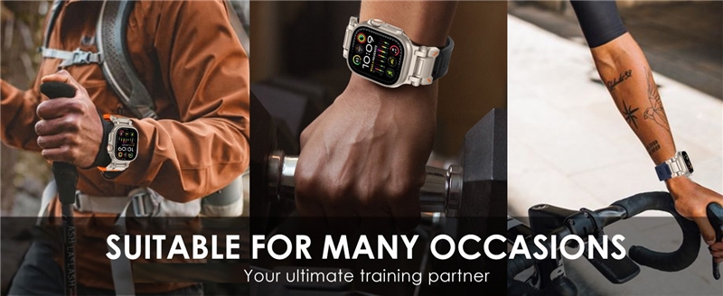 این بند به طور خاص برای اپل واچ Ultra 2/Apple Watch Ultra 49mm، Apple Watch Series 9/8/7/SE/6/5/4/3/2/1 در اندازههای ۴۵mm/44mm/42mm طراحی شده است. همچنین این بند برای مچهایی با اندازه ۱۴۵ میلیمتر تا ۲۳۰ میلیمتر مناسب است.