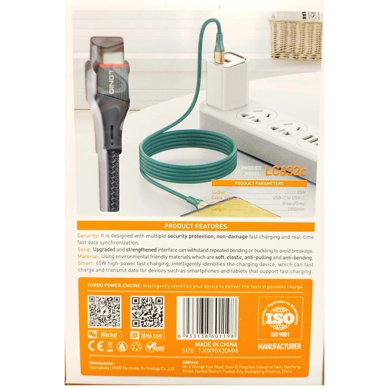 کابل Type-C به Type-c الدینیو LC632C از قابلیت شارژ سریع و انتقال داده برخوردار است. در دو سر این کابل کانکتور Type-C با پوشش پلاستیک ABS قرار داشته که کیفیت بسیار بالایی دارد. سر کانکتورها نیز از آلیاژ آلومینیوم ساخته شده است. بدنه این کابل از الیاف بافته شده ساخته شده که هم ظاهر بسیار شیک و جذابی داشته و هم در برابر خم شدن و خوردگی مقاوم است. طول کابل Type-C الدینیو LC632C برابر 2 متر است. کابل دو سر Type-C مدل Ldnio LC632C برای انتقال دیتا نیز مناسب بوده و می تواند با حداکثر سرعت 480 مگابیت بر ثانیه دیتا را انتقال بدهد.