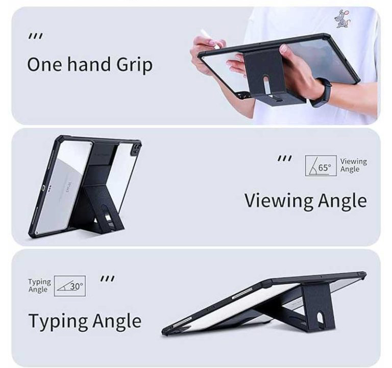 محافظت همیشگی از دستگاه های دیجیتال بخشی جدایی ناپذیر از نگه داری آنهاست که آیپد شما هم از این قاعده مستثناء نیست ، کاور ها باید ضمن حفظ زیبایی آیپد، از آن در برابر خطراتی مانند شوک و ضربه و به خصوص سقوط حفظ کنند. اگر کاوری باشد که طراحی منحصر به فرد آن ترکیبی از زیبایی کاور و خودِ آیپد را نمایان کند و همچنین محافظت ویژه ای از گوشه های آیپد کند قطعا بهترین انتخاب ما خواهد بود. کاور اپیکوی مدل Xundd Stand Holder همان کاوری است که تمامی این نیاز ها را برطرف میکند. در قسمت پشت قاب یک استند با کیفیت ساخته و طراحی شده است تا ضمن محافظت بیشتر بتوانید آن را باز کنید و روی میز کار یا برای طراحی و یا تماشای فیلم از آن استفاده کنید و در زاویه دلخواه آن را قرار دهید. این قاب ساخته شده از بهترین متریال اولیه یعنی PC کاملا شفاف و فشرده و در عین حال انعطاف پذیر است و همچنین TPU که به دلیل خواص نرمی و محافظت بالا در برابر ضربه این کاور را به یک کاور بی نظیر تبدیل میکند. همچنین خاصیت مقاومت بالا در برابر ضربه و خط و خش نیز به جذابیت آن می افزاید. در قسمت های کناری از TPU به شکلی عالی استفاده شده و برش های بسیار دقیق دیده میشود. این برش های دقیق دسترسی به درگاه ها را آسان کرده و قرار گیری دستگاه داخل کاور به بهترین شکل انجام میشود. انعطاف پذیری و نرمی آن ضربه را از دستگاه دور میکند و به آن انتقال نمیدهد بخصوص با توجه به وزن آیپد ها که سقوطشان با شدت بیشتری انجام میشود. همچنین راحتی را در هنگام در دست داشتن آیپد در ساعات طولانی استفاده هدیه میکند. نکته بسیار قابل توجه در خصوص کاور اپیکوی مدل Xundd Stand Holder وجود بامپر هایی است که در 4 گوشه کاور آیپد به شکل برآمده و نرم قرار داده شده اند تا گوشی همراه شما در برابر سقوط آسیب ناپذیر شود. لبه های برجسته کاور کمک میکنند حتی در صورت عدم وجود گلس روی صفحه نمایش از تماس آن با سطح صاف جلوگیری میشود. البته که به شکلی استاندارد طراحی شده و گلس شمارا در صورت استاندارد بودن آن بلند نمیکند. اپیکوی محافظت از لنز دوربین آیپد شما را فراموش نکرده است، پوششی کامل برای لنز دوربین در نظر گرفته شده است، لنز ها به درستی جای خود قرار میگیرند و لبه به شکلی دقیق 0.8 میلی متر بر آمده شده و حفاظت را از دستگاه شما را تکمیل میکنند.