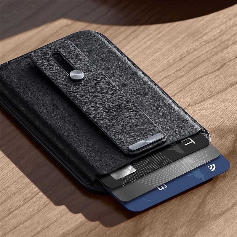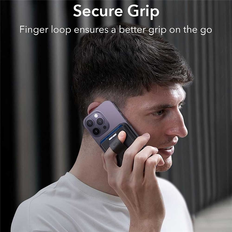 حلقه انگشتی در پشت جاکارتی، راحتی بیشتری در نگه داشتن گوشی در حین حرکت فراهم میکند و به سرعت قابل جمع شدن است تا بتوانید گوشی خود را به راحتی در جیب یا کیف قرار دهید.
