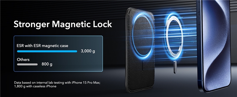 جاکارتی مگنتی ESR با نیروی نگهداری ۳۰۰۰ گرم، ۲۷۵٪ قویتر از برند رسمی است و اطمینان میدهد که کیف پول شما به طور امن بسته میماند. این ویژگی، امنیت و آسودگی خاطر بیشتری را برای شما فراهم میکند.