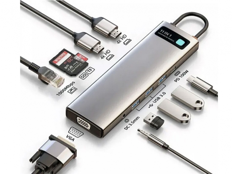 مجهز به 11 پورت (USB3.0 + Type C + HDMI + TF/SD + AUX + VGA + RJ45)