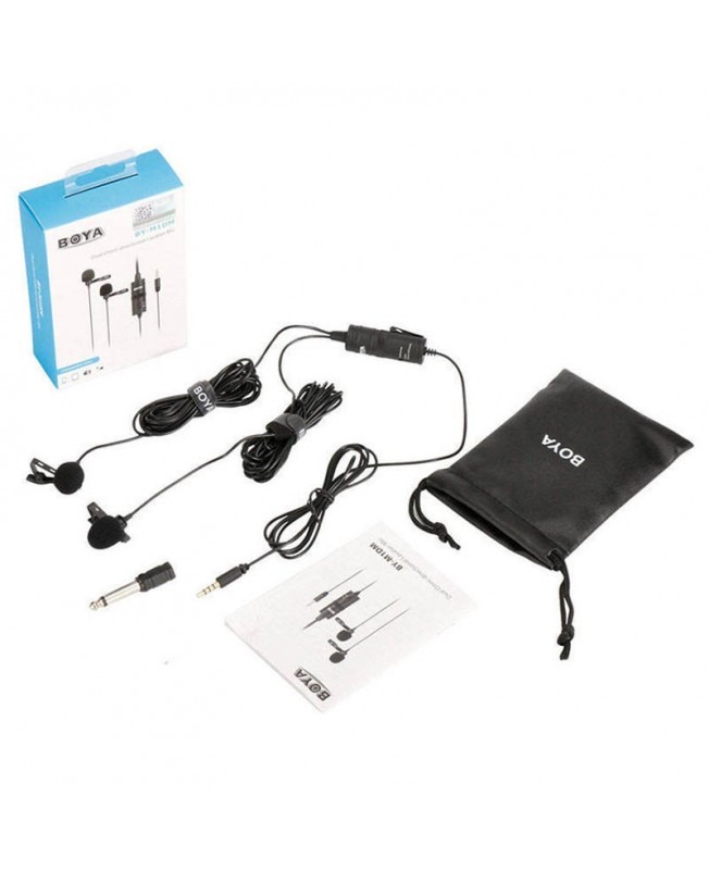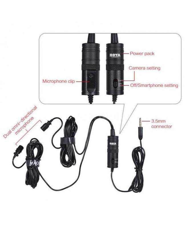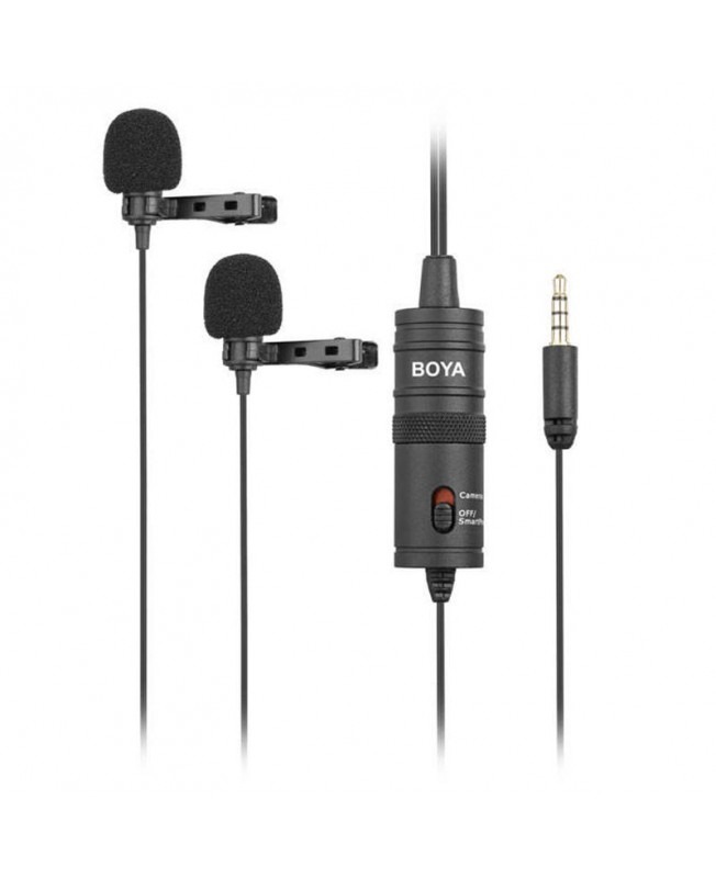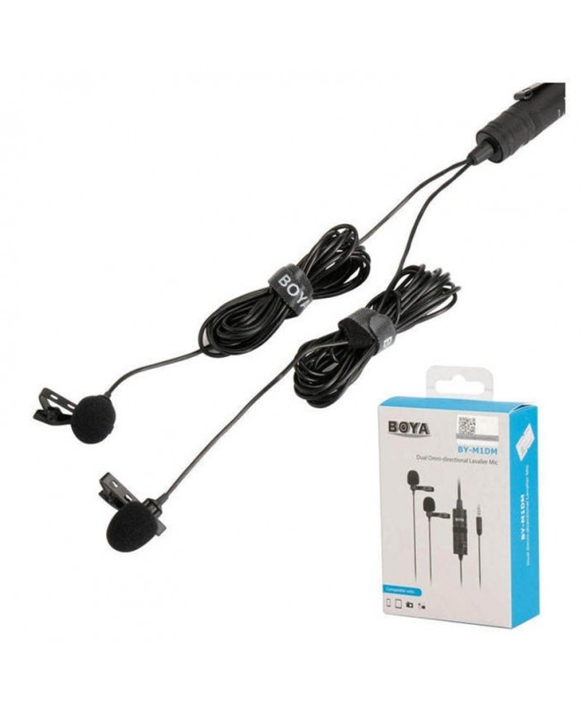 میکروفون یقه ای BY-M1DM برند Boya می تواند با بهترین کیفیت صدا را ضبط کند و به وسیله باتری LR44 تغذیه می شود. دهانه دیافراگم این میکروفن ۲٫۱ اینچ میباشد. برای جلوگیری از نویزهای ناشی از وزش باد، بخش فرستنده این میکروفون مجهز به محافظ است. تبدیل درگاه خروجی ۶ میلی متری، گیره، دفترچه راهنما و کیف حمل از دیگر لوازم جانبی همراه این میکروفون است.و به راحتی بر روی دوربین های DSLR، دوربین های ورزشی و گوشی های موبایل نصب شود ،همچنین وزن این میکروفن 68 گرم و در ابعاد 152*114*60 میلی‌متر با فرکانس پاسخ‌گوییHz~18kHz 65 و حساسیت 30 دسیبل و گستره دینامیکی 74 دسیبل به بالا می باشد. رابط این میکروفن جک 3.5 میلی متری صدا می باشد که دارای دو گیرنده است و با یک مبدل 3.5 میلی‌متری به تمامی دستگاه‌های ضبط‌ کننده وصل می‌شود. BY-M1DM از دو میکروفون همه‌جهته که با یک سیم 4 متری به هم وصل شده‌اند تشکیل شده و برای مصاحبه، ارائه، ساخت پادکست، وب‌ کست و توبید محتوا فوق‌العاده می‌باشد.همچنین به همراه این میکروفن دو روکش اسفنجی، یک کیف حمل و دو گیره جداشونده فلزی نیز در بسته بندی وجود دارد.