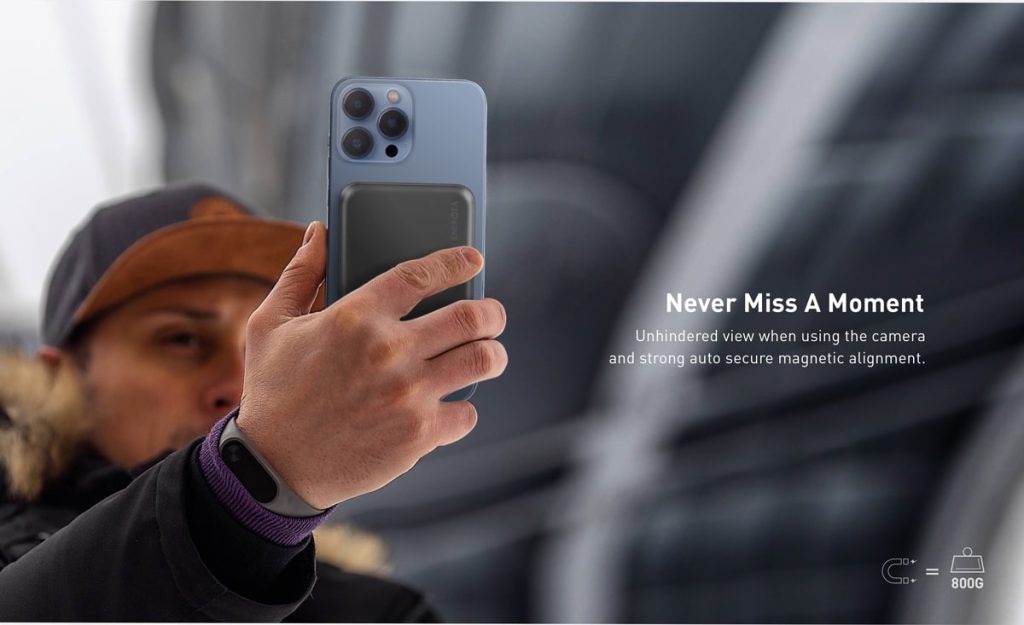 قابلیت شارژ وایرلس گوشی و سازگاری با اپل مگسیف در پاوربانک MagPac Mini