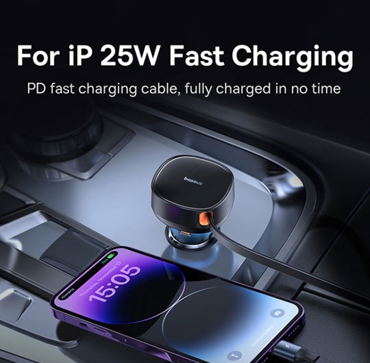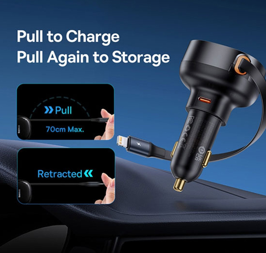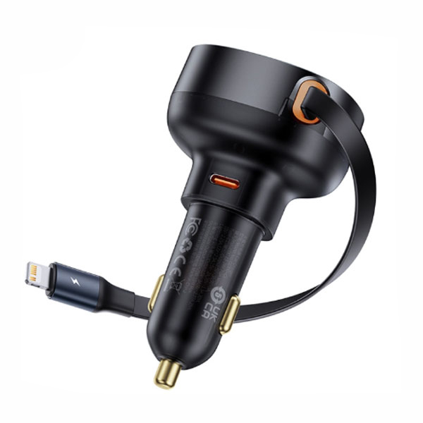 شارژر فندکی با کابل آیفونی جمع شونده 55 وات بیسوس Baseus Enjoyment Pro Car Charger CCTXP-CL