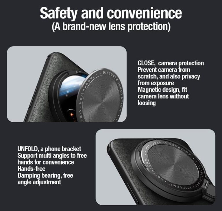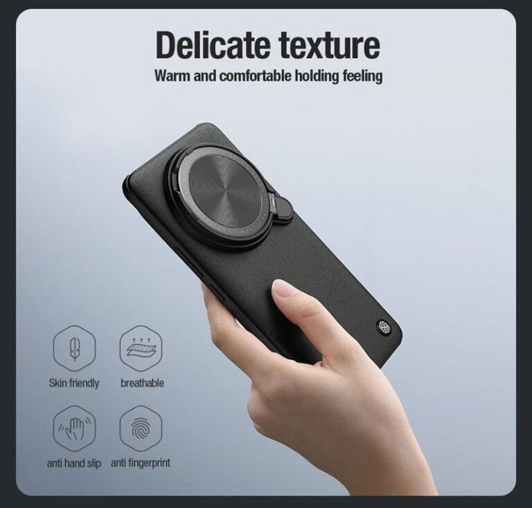 کاور چرمی Camshield Prop Leather که نوعی زیبایی بصری ساده و مجلل را ارائه می دهد، قطعا یک طراحی کلاسیک است. این پوسته ترکیبی از سخت و نرم را با اتصال لبههای TPU و صفحه پشتی رایانه شخصی برای جلوگیری از افتادن و خراشیدگی به کار میگیرد، و لایهای از چرم بافتدار که صفحه پشتی رایانه شخصی را میپوشاند دارای یک لمس ظریف و ابریشمی، ضد اثر انگشت و جلوگیری از آلودگی روغن است. پوشش کشویی لنز ثبت شده نه تنها از خراشیدن لنز جلوگیری می کند، بلکه از حریم خصوصی تلفن شما در برابر افشای آن محافظت می کند. همچنین نوارهای ضد لغزش با شکستگی براق براق لیزری در دو طرف اضافه شده است تا عملکرد ضد سقوط را ارتقا دهد.متریال ترکیبی از سخت و نرم حاشیههای نرم TPU و قاب پشتی سخت و با ترکیب چرم ظریف، تلفن همراه شمارا در برابر ضربدیدگی و خط و خش محافظت میکند. همچنین در قسمت کشویی محافظ لنز دوربین از آلیاژ خیره کنندهای استفاده شده است. پوشش لنز از آلیاژ آلومینیوم سخت، فناوری بافت CD که روی سطح آن استفاده شده است، و دارای بافت براق بوده و نور را منعکس میکند.در طراحی و ساخت کیف محافظ چرمی Camshield Prop Leather نیلکین از تلفن همراه واقعی استفاده شده است و متناسب با تلفن همراه شماست، همچنین ضخامت مناسب روی محافظت از تلفن و شارژ بیسیم تاثیری نمیگذارد.