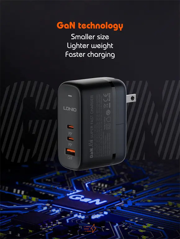آداپتور 3 پورت 65 وات الدینیو Ldnio GaN Fast Charging Adapter Q366