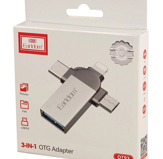 مبدل او تی جی 3 در 1 ارلدام EARLDOM 3 IN 1 OTG ADAPTER OT93