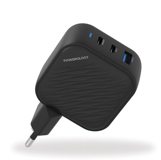 آداپتور شارژ سه پورت 65 وات پاورولوژی Powerology GaN Ultimate PD Charger PWCUQC019