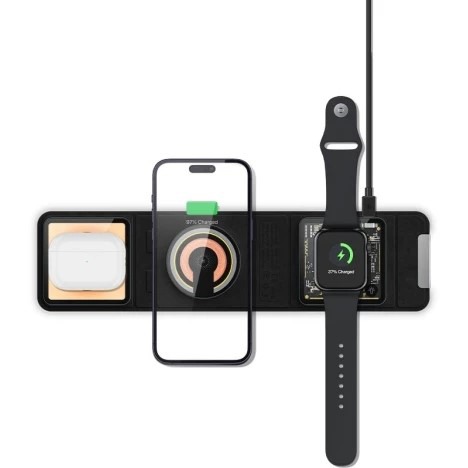 شارژر بی سیم مکس کو یک شارژر همه کاره و تاشو است که دارای سه قسمت است و میتواند تمام گجت های هوشمند شما را به صورت یکجا و همزمان شارژ کند. امروزه با فراگیر شدن استفاده از گجت های هوشمند از جمله گوشی موبایل ، ساعت هوشمند ، ایرپاد نیاز به شارژ این گجت ها به یک نیاز همگانی تبدیل شده است از طرفی به همراه داشتن شارژر این سه گجت همیشه و در همه حال ممکن است دست و پا گیر و مشکل باشد ، داشتن یک شارژر همه کاره که در عین حال هر سه گجت را شارژ کند و از طرفی کم جا قابل حمل و شیک و مدرن باشد میتواند بسیار تجربه و خوشایندی خواهد بود.