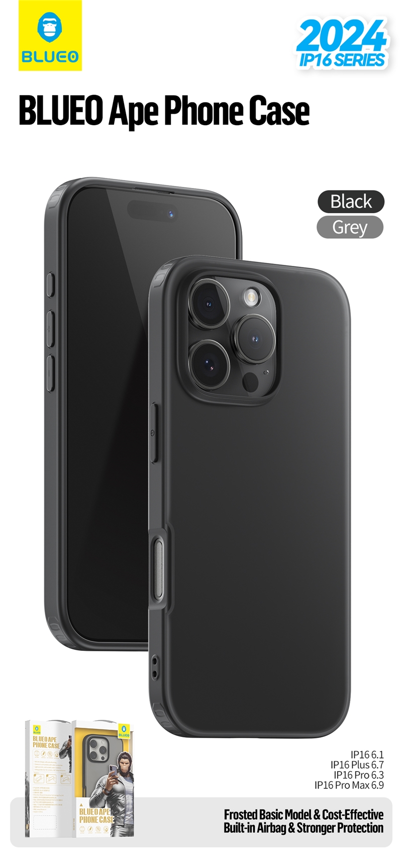 قاب برند بلوئو مدل BLUEO APE Phone Case No Magnetic Iphone مناسب برای Apple iPhone 16 Pro Max