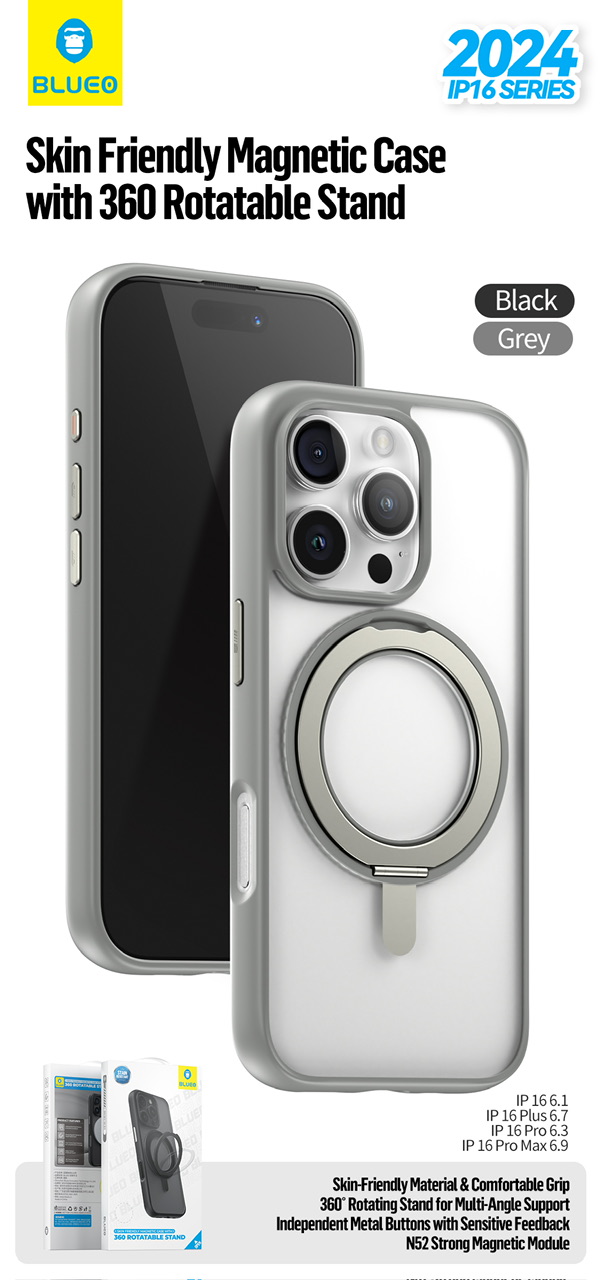 قاب برند بلوئو مدل Blueo crystal magsafe case with rotatable stand مناسب برای Apple iPhone 16