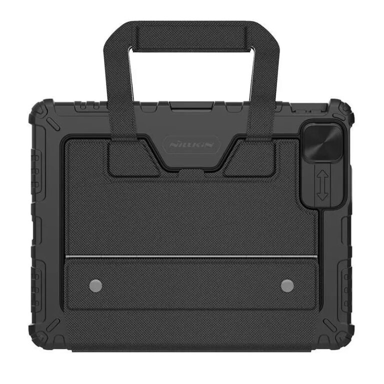 کیف کلاسوری نیلکین مدلBumper Go Keyboard یک کیف محافظ و مقاوم است که دارای یک کیبورد با کیفیت نیز میباشد که با استفاده از آن می توانید به کارهای روزمره بپردازید. تفاوت این مدل با Bumper معمولی دسته ی محکم بالای کیف است که حمل آن را آسان تر میکند. این کیف کلاسوری دور تا دور بدنه دستگاه را میپوشاند.این کیف دارای مقاومت بالای بوده و در برابر ضربه مقاوم است.البته به این معنی نبوده که در برابر ضربات شدید نیز مقاوم است.جنس این کاور ازTPUوPCساخته شده که دارای مقاومت بالایی می باشد.این کیف کلاسوری دارای محافظ دوربین بوده که به صورت کشویی عمل میکند.یکی از قابلیت های مفید در قاب تبلت ها داشتن استند است؛چون این دستگاه ها ابعاد بزرگی دارند و نگهداری از آنها روی استند بسیار راحت تر و کم خطر تر است.از همین رو کیف کلاسوری دارای یک استند تاشو است که استحکام کافی برای نگهداشتن و استفاده از تبلت را خواهد داشت.شما می توانید حالت های مختلفی برای قرار گرفتن تبلت انتخاب کنید.این محصول نیلکین دارای یک کیبورد یا صفحه کلید قابل جدا شدن می باشد.شما در صورت نیاز می توانید از این کیبورد استفاده کرده و یا آن را جدا کنید.کلیدهای این کیبورد به گونهای(قطرهای)طراحی شده که قالب انگشتان شما باشد.این کلیدها بسیار بی صدا بوده و وزن پایینی دارد؛بعلاوه کار با آن شما را خسته نمیکند.کلیدهای کیبورد کیف کلاسوری بسیار حساس بوده و با کمترین فشار عمل خواهد کرد.بر روی این کیبورد یک پد لمسی وجود دارد که می توانید از آن به جای موس استفاده کنید.شما می توانید از طریق بلوتوث این کیبورد را به دستگاه خود متصل کنید.نرخ نمونه برداری لمسی پد لمسی آن120هرتز بوده که بسیار حساس بوده و از چند لمس همزمان پشتیبانی می کند.این کیبورد دارای یک باتری150میلی آمپر ساعتی بوده که برای پر شدن آن نیاز به حدود1.5تا2ساعت شارژ بوده و با پر بودن شارژ تا30روز می توانید از آن استفاده کنید؛البته این عدد برای روزی2ساعت کار با کیبورد است که متناسب با استفاده شما متغییر خواهد شد.قابل ذکر است نسخه بلوتوث این کیبورد3.0می باشد و محدوده عملکرد آن حدود10متر است.در قسمت جلویی این قاب، جای برای قرار گرفتن قلم هوشمند اپل تعبیه شده که می توانید قلم خود را در این قسمت ها قرار دهید.