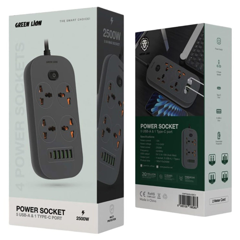چندراهی برق گرین لاین مدل GNPOWS5USB یک محصول کارآمد و با کیفیت است که توسط کمپانی شیر سبز طراحی و تولید شده است. این چندراهی با توان کلی 2500 وات، مجهز به چهار پریز یونیورسال است که از تمامی دو شاخه‌ها و سه شاخه‌های موجود در بازار پشتیبانی می‌کند. با وجود این چندراهی، می‌توانید به راحتی دستگاه‌های الکترونیکی خود را به طور همزمان به برق وصل کنید و از محافظت کامل آنها بهره‌مند شوید.