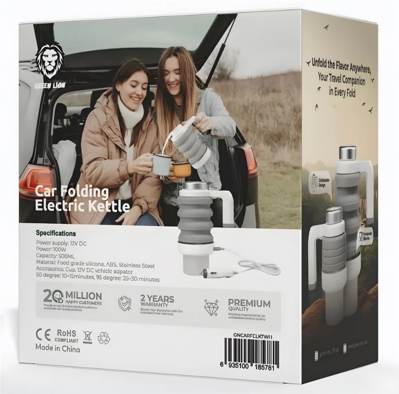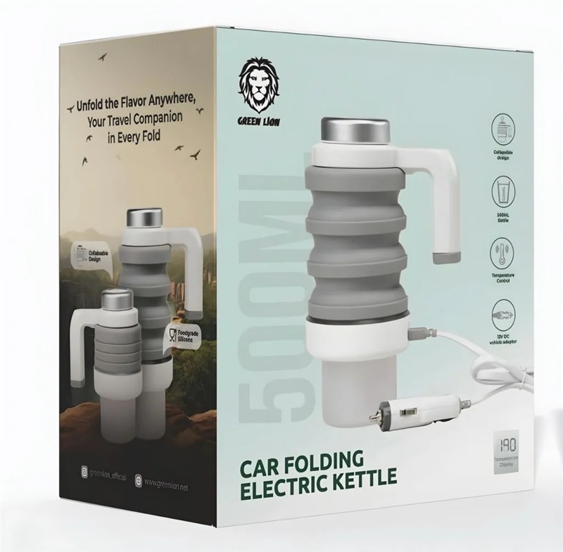 کتری برقی تاشو گرین لاین، یک همراه بینظیر برای سفرها و ماجراجوییهای شماست. این کتری با ظرفیت 500 میلیلیتر طراحی شده تا در هر زمان و مکانی بتوانید نوشیدنیهای گرم خود را آماده کنید. با منبع تغذیه 12 ولت DC، این کتری به راحتی به فندک خودرو متصل میشود و امکان استفاده در حین سفرهای جادهای یا کمپینگ را فراهم میکند.