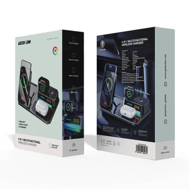 استند و شارژر وایرلس و اسپیکر گرین لاین Green Lion 6in1 Multifunctional GN6in1MFWCBK توان 15 وات