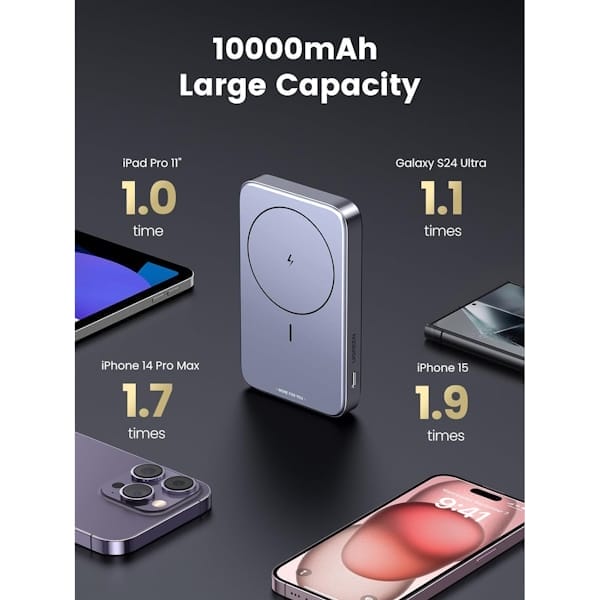 از پاوربانک mAH Mini Wireless 10000 یوگرین می‌توانید برای شارژ طیف گسترده‌ای از دستگاه‌ها استفاده کنید. این دستگاه با اکثر گوشی‌های هوشمند و تبلت‌هایی که با کابل‌های بی‌سیم و USB شارژ مانند سری iPhone 14&13&12، Galaxy S23 Ultra و iPad Pro 2021 سازگار است.