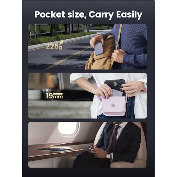 باوجود ظرفیت بالای ۱۰۰۰۰ میلی آمپر ساعتی این دستگاه، ظاهر آن بسیار کوچک و با ظرافت بالایی طراحی شده است. این طراحی موجب می‌شود تا بتوان این دستگاه را در کیف یا جیب به‌راحتی حمل کرد. این پاوربانک مگنتی تنها ۷.۹ اونس وزن دارد، این درحالی است که وزن گوشی آیفون ۱۵ پرو مکس ۷.۸ اونس است