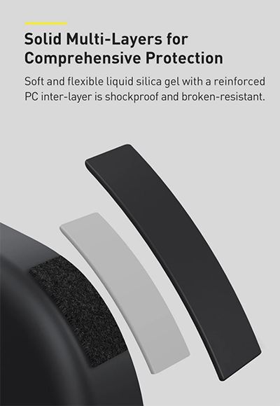 قاب ژله ای آیفون 13 مدل Baseus Silica Gel از ژل سیلیکون خوراکی ساخته شده و کاملا انعظاف پذیر می‌باشد. اما از آنجایی که سیلیکون به تنهایی استحکام بالایی ندارد، چند لایه ضد ضربه PC هم در آن به کار رفته تا به خوبی از گوشی محافظت کند. برای قسمت داخلی قاب هم پوششی نرم در نظر گرفته شده تا گوشی به راحتی درونش بنشیند.