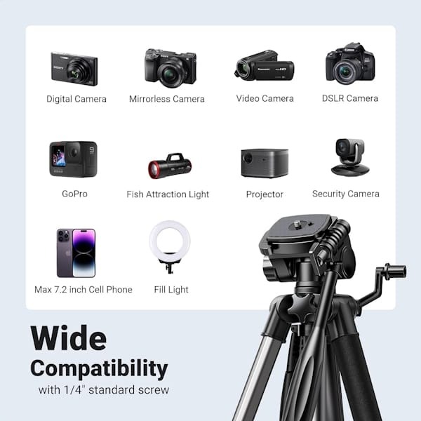 ارتفاع این سه پایه قابل تنظیم است و می‌توانید آن را تا 175 سانتی‌متر تنظیم کنید. این ویژگی به شما امکان می‌دهد تا از آن در سطوح مختلف و برای زوایای دید متفاوت استفاده کنید.