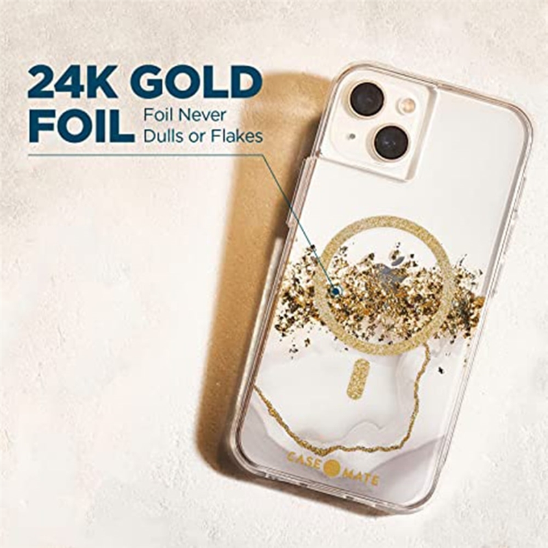 مرمر کارات: این قاب نیمه مات با طراحی مرمر برای آیفون 14 پلاس با براده های طلای 24 عیار به زیبایی طبیعی دستگاه شما اجازه می‌دهد تا جلوه‌ای از لوکس بودن داشته باشد. و در عین حال عملکرد آن بی نقص و  کاملا محافظت‌شده باقی بماند. دارای یک سطح صاف با زرق و برق تعبیه شده در داخل یک قاب رزین شفاف است که استفاده و حمل آن را بسیار آسان می کند. آیا هیچ مورد دیگری را سراغ دارید که حس لوکس بودن را بیشتر از طلا انتقال دهد.