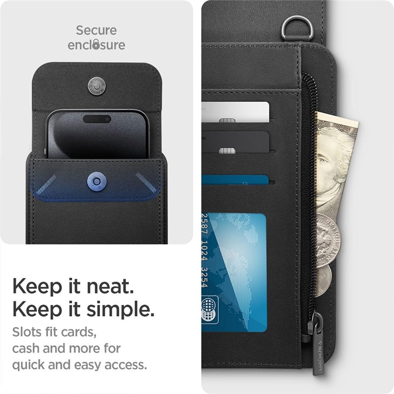 کیف موبایل Spigen Valentinus با استفاده از چرم PU با کیفیت بالا ساخته شده است که علاوه بر زیبایی، بهطور قابل توجهی سبک و راحت است. طراحی ساده و شیک این کیف به راحتی با هر استایلی هماهنگ میشود و آن را برای استفاده روزمره ایدهآل میکند.
