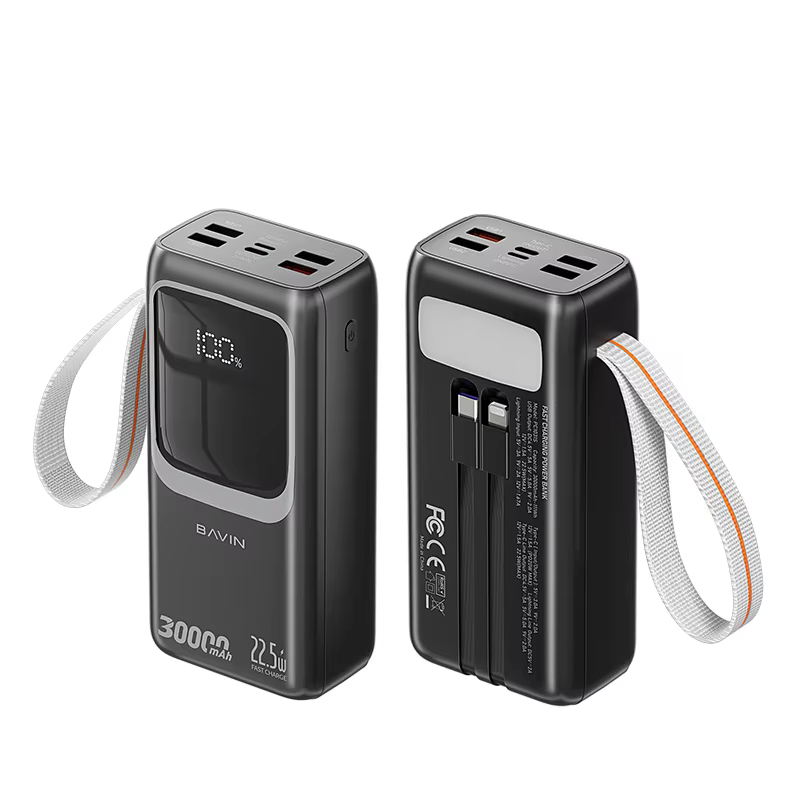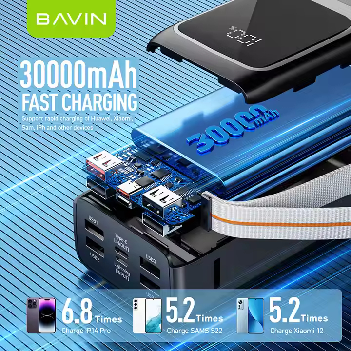 ظرفیت بالا و شارژ سریع: این پاوربانک قابل حمل BAVIN با ظرفیت 30000 میلی‌آمپر ساعت دارای قابلیت‌های شارژ سریع است و اطمینان می‌دهد که دستگاه‌های شما در حین حرکت روشن و متصل باقی بمانند.