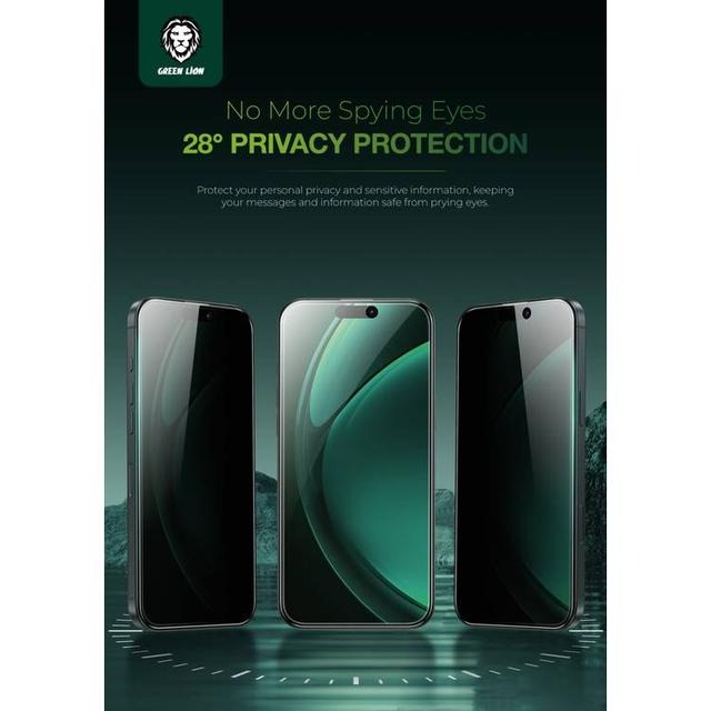 گلس حریم شخصی تمام صفحه تمام چسب گرین لاین آیفون iPhone 16 Pro Green Lion Diego Pet Privacy