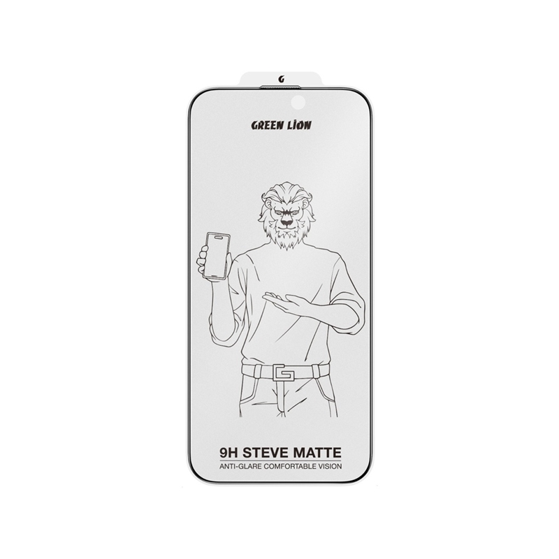 گلس تمام صفحه تمام چسب آیفون گرین لاین Apple iPhone 16 Pro Max Green Lion 9H Steve Matte