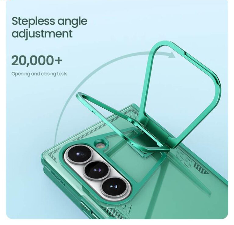 یکی از شرکت های معتبر در زمینه تولید لوازم جانبی گوشی، کمپانی نیلکین می باشد. این شرکت تقریبا همه لوازم جانبی گوشی ها اعم از کیف، قاب، محافظ صفحه و … را طراحی و تولید می کند و به دلیل کیفیت بالای محصولاتی که عرضه کرده به عنوان یکی از برندهای معتبر در این زمینه شناخته شده است. از میان انواع مختلف قاب هایی که تولید کرده می توان به قاب نیلکین مدل Iceblade Fold Camera protective اشاره کرد که از جنس پلی کربنات (PC) و تی پی یو بوده و از موادی سازگار با محیط زیست و غیر سمی تهیه شده است. قاب نیلکین Iceblade گوشی Z Fold 6 با استفاده از فناوری تزریق پلاستیک ساخته شده و از کیفیت بسیار بالایی برخوردار است. این قاب با طراحی منحصر به فردی که دارد در دو طرح شفاف سبز و مشکی تولید و روانه بازار شده است. این قاب ها به نحوی رنگ ریزی شده که در عین حفظ شفافیت خود هاله ای از رنگ سبز و مشکی را نیز دارند که این زیبایی آنها را دو چندان می کند، چون کاربر می تواند با انتخاب رنگ مورد نظر خود، با استفاده از شفافیت قاب نیلکین در عین حفظ زیبایی گوشی، همچنین رنگ آن را تغییر دهد و از کار با آن لذت ببرد. قاب نیلکین گوشی Z Fold 6 از پلاستیکی غیر سمی و سازگار با محیط زیست ساخته شده و در این زمینه استاندارد های لازم را نیز دارد. سطح پوشش iceblade شامل قسمت پشت گوشی، لبه ها و دوربین آن می شود که از این نظر هم بسیار عالی کار کرده و با پوشش کامل دستگاه، نسبت ب محافظت آن در برابر ضربه و سقوط عملکرد قابل قبولی دارد. این قاب دارای جنسی از TPU (نسبتا نرم) و PC (نسبتا خشک) بوده و به سبب ظرافتی که در آن به کار رفته حجم زیادی ندارد و بنابراین به موقع استفاده از آن اندازه گوشی را زیاد تغییر نمی دهد. قاب نیلکین iceblade با وجود برجستگی هایی که در لبه های آن به کار رفته ضد لغزش بوده و کاربر می تواند با اطمینان خاطر از آن استفاده نماید. بخش های مربوط به سنسور و درگاه های گوشی با دقت بسیار بالایی برش داده شده و همین امر سبب شده که دسترسی کاربر به این بخش ها به راحتی صورت گیری. کارکرد فوق العاده دیگر این کاور این است که می توان با استفاده از درب محافظ دوربین که بر روی آن وجود دارد گوشی را در دو حالت استند قرار داد و از آن استفاده نمود که این ویژگی به ویژه به هنگام تماشای ویدئو در گوشی بسیار کاربردی است.