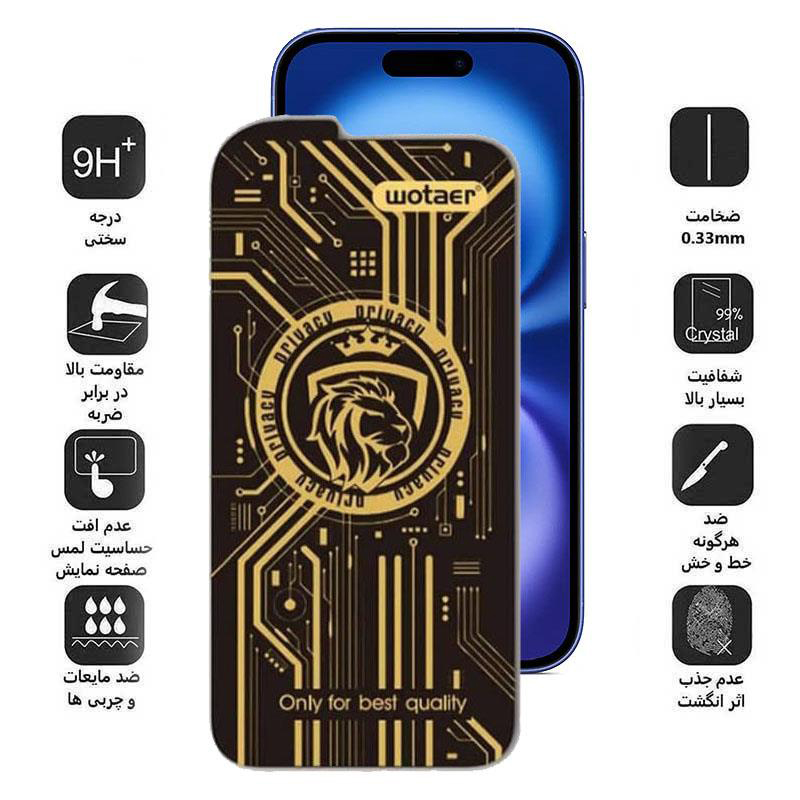 افرادی که به فکر رعایت حریم شخصی خود هستند و دوست ندارند اطلاعات شخصی آنها را کسی نبیند ، میتوانند از بهترین گزینه لوازم جانبی گوشیهای هوشمند یعنی گلس پرایوسی استفاده کنند و نه تنها نمایشگر خود را ایمن نگه دارند ، بلکه اجازه مشاهده صفحه را به دیگران نیز ندهند یا نگران به خطر افتادن اطلاعات شخصی خود در مکانهای عمومی هستید ؟ آیا از دیده شدن صفحه نمایش گوشی توسط افراد کناری خود رنچ میبرید؟ در این شرایط بهترین راه خرید محافظ صفحه نمایش حریم شخصی اپیکوی مدل Wotaer Privacy است.محافظ صفحه نمایش حریم شخصی اپیکوی مدل Wotaer Privacy علاوه بر این که از صفحه نمایش گوشی شما مراقبت میکند و امکان آسیب به آن را کاهش میدهد ، زاویه دید گوشی را محدود کرده و مانع از دیده شدن صفحه نمایش گوشی توسط اطرافیان میشود. رد و بدل کردن اطلاعات بانکی و مواردی از این قبیل برخی از کارهایی هستند که شاید در طول روز بارها آن را با گوشی هوشمند خود انجام دهید. از آنجایی که ایمن نگه داشتن این اطلاعات حائز اهمیت است ، خرید گلسی که بتواند حریم شخصی شما را حفظ کند را نباید فراموش کرد.محافظ صفحه نمایش حریم شخصی اپیکوی مدل Wotaer Privacy از نظر ظاهر مشابه با گلسهای معمولی است. اما در این گلس از نوعی تکنولوژی استفاده شده است که با محدود کردن زاویه دید ، افرادی که در کنار شما قرار دارند نمیتوانند نمایشگر گوشی را ببیند. این محافظ صفحه نمایش حریم شخصی اپیکوی مدل Privacy مقاومت بالایی دارد.ضد خط و خش است.ضد ضربه است.اثر انگشت بر روی آن باقی نمیماند.نسبت به لمس حساس است؛بنابراین عملکرد گوشی را مختل نمیکند.اطلاعات شخصی و حساس شما را امن نگه میدارد.زاویه دید محدود دارد.استفاده از فناوری Privacy باعث شده است که از رو به رو یا به عبارتی زاویه 90 درجه بتوانید صفحه موبایل خود را ببینید؛در غیره این صورت صفحه نمایش گوشی به صورت سیاه و تاریک دیده میشود.به آسانی نصب میشود و هیچ گونه حبابی زیر آن ایجاد نمیشود.محافظ صفحه نمایش حریم شخصی اپیکوی مدل Wotaer Privacy دقیق است و محل قرار گرفتن دوربین سلفی به خوبی مشخص است.تمام چسب بودن این محافظ صفحه نمایش حریم شخصی اپیکوی مدل Privacy باعث شده است تا شما بتوانید به راحتی گلس را روی گوشی نصب کنید.این گلس یک انتخاب خوب برای کسانی است که نگران دیده شدن اطلاعات خود هستند.