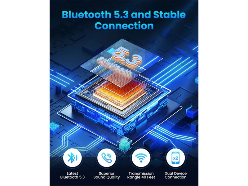 بلوتوث 5.3 جدیدترین ورژن بلوتوث موجود است و اتصالی بسیار سریع و پایدار را برای دستکاه‌‎ها رقم می‌زند. مکالمه‌ای واضح، اتصالی فوق‌العاده سریع و بهبود ذخیره انرژی از ویژگی‌های این نسخه است. این گیرنده به شما اجازه می‌دهد دو دستگاه را به صورت همزمان به آن متصل کنید و شناسایی خودکار آخرین دستگاه جفت شده هم از ویژگی‌های آن است. برد مسافتی آن 12 متر بوده و در خودروهایی مانند اتوبوس خیلی راحت امکان اتصال موبایل برای سرنشینان عقب‌تر فراهم است.