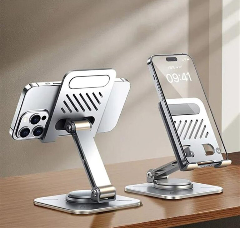 همچنین این هولدر استند دارای قابلیت تنظیم زاویه نمایش 180 بوده و به راحتی قابل جمع شدن میباشد؛و دارای بریدگی مخصوص برای وصل کابل شارژ به گوشی و تبلت میباشد.