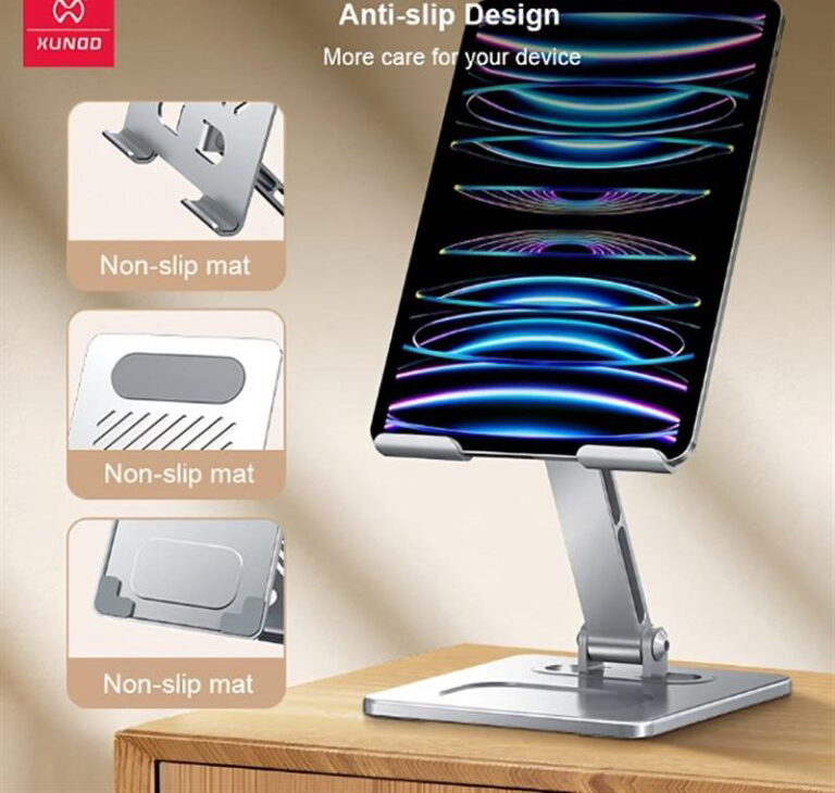 این نگهدارنده دارای طراحی ضد لغزش و ایمن است و دارای قابلیت چرخش به سمت بالا و خوابیده را دارد و این پایه هولدر مناسب برای دستگاه هایی با اندازه 5.7 اینچ تا 12.9 اینچ می باشد.