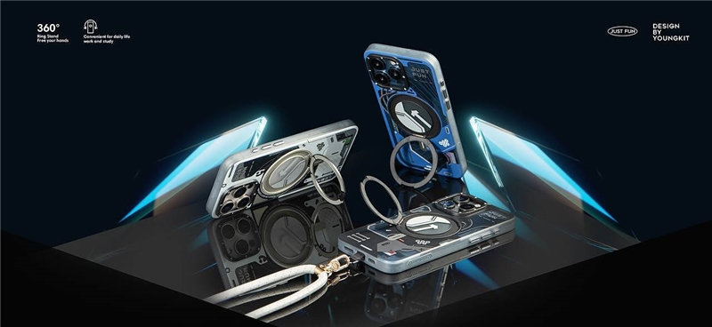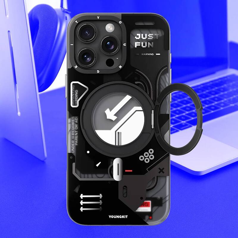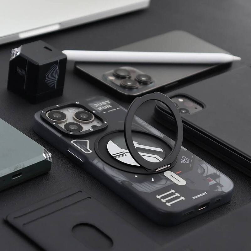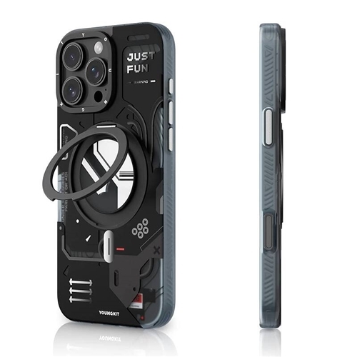 قاب یانگ کیت youngkit مدل Cyberpunk 360° Rotation Ring Stand Case مگ سیف مناسب برای Apple iPhone 15 Pro Max