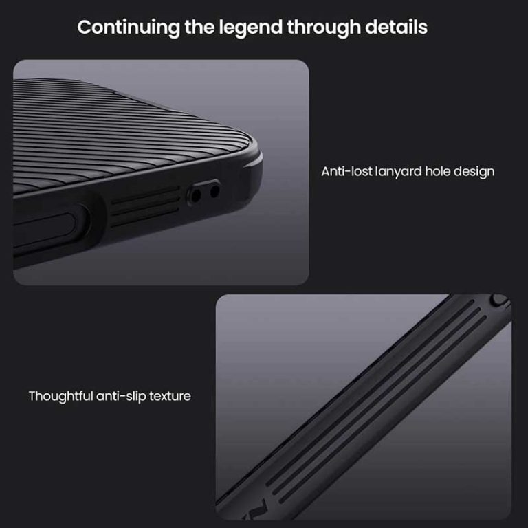 کاور محافظ لنز نیلکین iPhone 16 Pro از جنس PC سخت بوده و بخش های اطراف آن دارای خط های موربی می باشد که برای جلوگیری از لغزیدن گوشی در دستان شما تعبیه شده است. همچنین قسمت پشتی قاب نیز از همین طرح پیروی می کند. اما مزیت اصلی این قاب نسبت به کاورهای دیگر، محافظت کامل از دوربین گوشی است. در قسمت پشت قاب CamShield Pro یک بخش متحرک وجود دارد که مانند یک درپوش کشویی روی دوربین گوشی را می پوشاند. در صورت دلخواه می توانید این درپوش را کنار زده و از دوربین خود استفاده کنید.