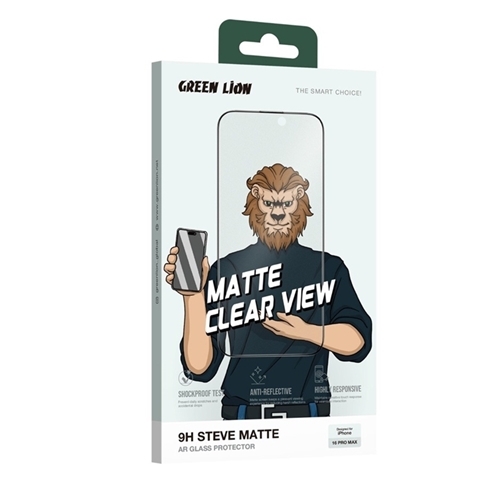 گلس تمام صفحه تمام چسب آیفون گرین لاین Apple iPhone 16 Pro Green Lion 9H Steve Matte