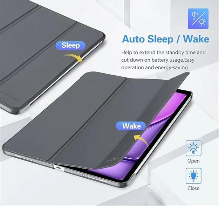 طراح بزرگی که تبلت دارند باعث شده است که همیشه احتمال آسیب به آنها وجود داشته باشد. بنابراین بهتر است برای مراقبت از تبلت خود یک کیف زیبا تهیه کنید.با خرید کیف کلاسوری اپیکوی مدل Smart Case یک کیف شیک برای تبلت خود خواهید داشت.این کاور بسیار باکیفیت است و از مواد اولیهی چرم مصنوعی و TPU درجه یک ساخته شده است.طراحی زیبایی که این کاور دارد چشمها را به خود خیره میکند.از جنس TPU، چرم PU و پلاستیک سخت ساخته شده است و امنیت بالایی را به تبلت شما اضافه میکند.برای مقاومت بیشتر از دولایه محافظتی استفاده شده است.قسمت پشتی از جنس چرم مصنوعی محکم و ضد خش است و به شکلی مات نمایانگر تبلت شما خواهد بود. برای لبههای قاب از TPU منعطف استفاده شده تا در برابر شوک و ضربه مقاوم باشد. احتمالا برای شما هم اتفاق افتاده است که به طور ناگهانی شاهد سقوط تبلت یا گوشی خود باشید.اگر دقت کرده باشید آسیب بیشتر از همه گوشهها را تهدید میکند.برای حل این مشکل به هر گوشه قاب در چهارگوشه بامپر اضافه شده. پس باوجود این کیف اگر تبلت از دستتان بیافتد آسیبی نمیبیند. اگر زیاد با تبلت کار میکنید برای راحتی لازم است بتوانید آن را در زوایای مختلف قرار دهید و برای امور طراحی و تماشای فیلم یا مطالعه از آن استفاده کیند. روی روکش کیف دو برش قرار دارد، در کیف کلاسوری خود را میتوانید به شکل یک پایه استفاده کنید و آن را در برش های قرار داده شده بگذارید تا در دو زاویه دلخواه بتوانید از تبلت خود برای امور مختلف استفاده کنید. با اینکه اکثر کیفها نسبت به قاب ضخامت بیشتری دارند اما ضخامت این کیف به گونهای است که به هیچ وجه شکل و فرم تبلت شما را به هم نمیریزد و همچنان خوشاستایل باقی میماند. برای این کار به یک استند نیاز دارید. بهکمک این بامپر میتوانید تبلتتان را در حالت یا افقی در هر زاویهای که میخواهید تنظیم کنید. اپیکوی فکری برای قلم هم کرده. اگر جایی میروید و فقط میخواهید تبلتتان را با خود ببرید لازم نیست نگران قلم باشید. کنار تبلت جایی برای قلم هم در نظر گرفته شده است. برشهای این کیف کاملا دقیقاند.جای تمام کلیدهای فیزیکی،دوربین،بلندگو و دیگر چیزها بادقت در نظر گرفته شده. بنابراین در استفاده از آن به مشکل برنمیخورید.این کاور مانع از ایجاد خط و خراش بر روی دوربین تبلت شما میشود.