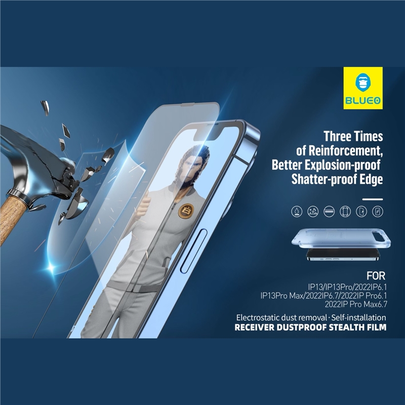 گلس فول برند بلوئو BLUEO Anti dust HD glass anti static with applicator مناسب برای Apple iPhone 16 Pro Max