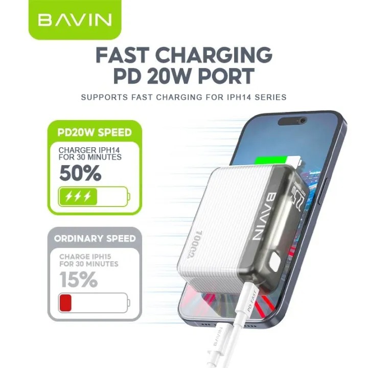 پاوربانک این روزها از ضروری ترین وسایل همراه ما به حساب می آیند. پاوربانک Bavin PC1021 با داشتن یک درگاه خروجی USB و یک درگاه تایپ سی، توان کلی 22.5 وات و ظرفیت اسمی 10000 میلی آمپر ساعت می تواند همراه خوبی برای شما باشد. داشتن چراغ قوه و نمایشگر دیجیتالی برای نمایش میزان باتری باقی مانده کامل کننده ویژگی های این پاوربانک است.