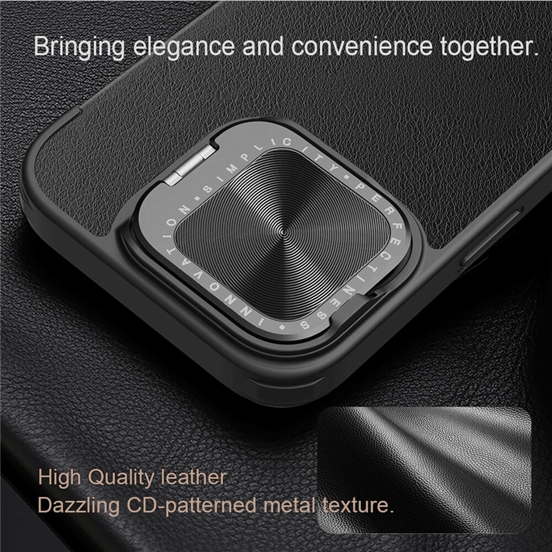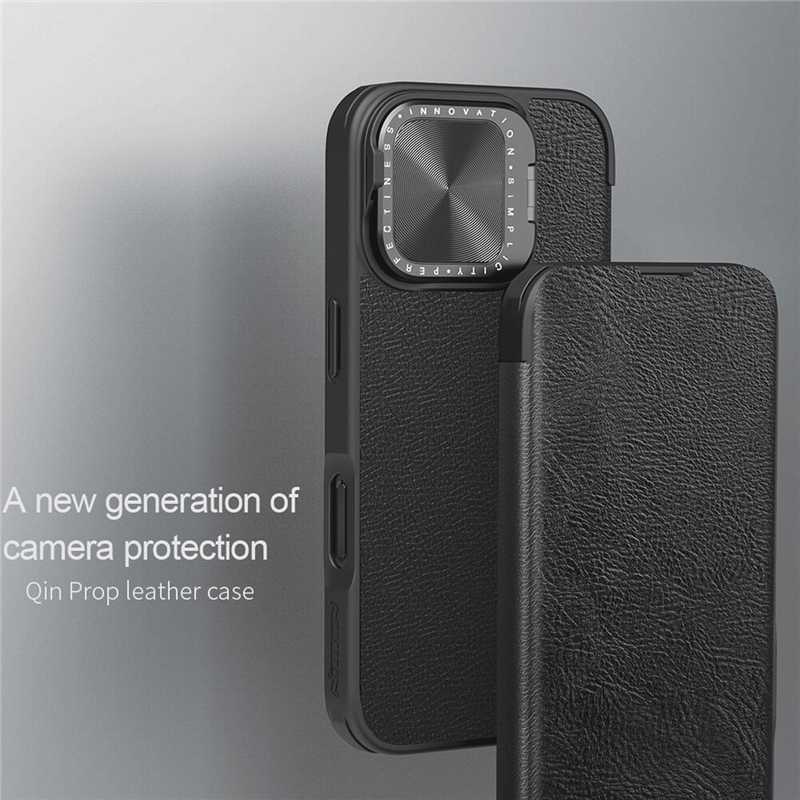 قاب محافظ لنز کشویی چرمی iPhone16 Pro Max Nillkin Qin Prop Case