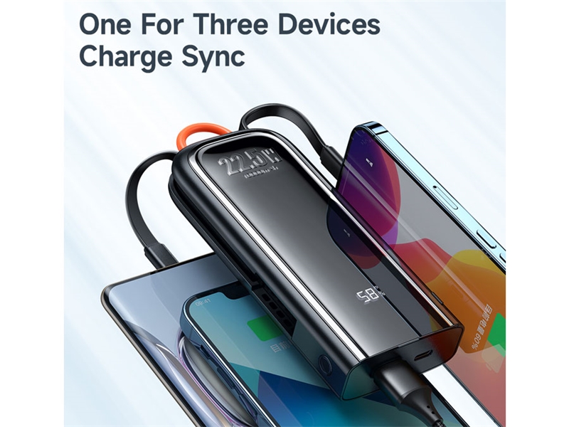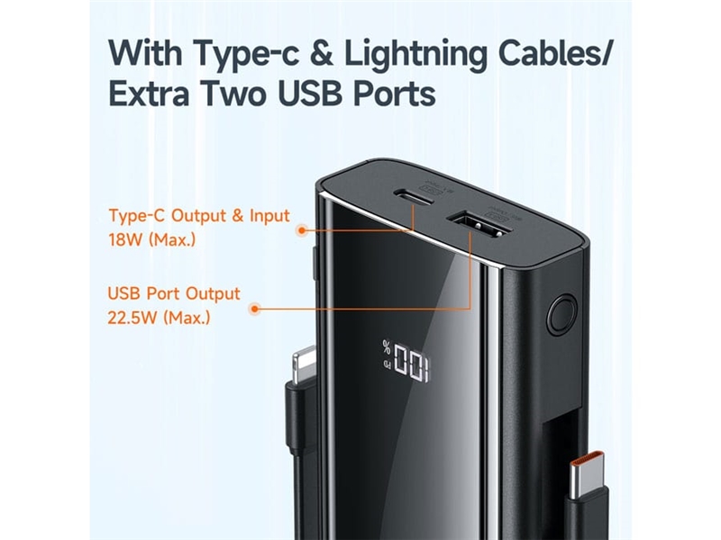 با استفاده از آن شارژ همزمان سه دستگاه با پورت USB و کابل‌های لایتنینگ و تایپ‌سی برایتان فراهم خواهد بود و درگاه Type-c هم عملکرد ورودی و شارژگیری را بر عهده دارد.