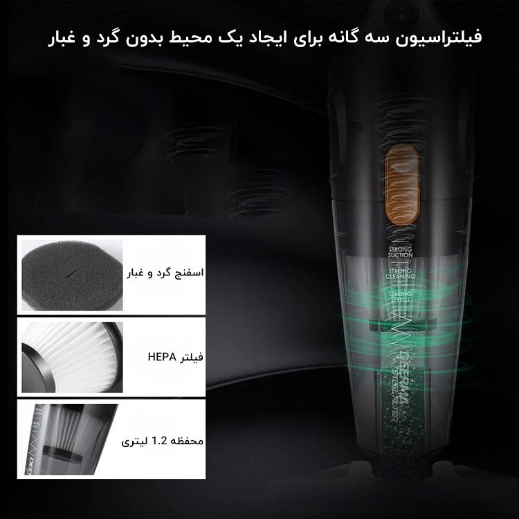 شرکت درما زیر مجموعه شرکت شیائومی می باشد که در زمینه تولید محصولات نوآورانه لوازم خانگی مشغول می باشد .جارو برقی DX115C یک محصول کاربردی است که با توان 600W میتواند یکی از وسایلهای کاربردی خانه برای تمیز کردن محسوب شود. این جارو برقی قابلیت تمیز کردن مکانهای مختلف مانند زمینهای سرامیک، سنگ، پارکت و سنگ مرمر را دارا است. شما با استفاده از این جاروبرقی قادر خواهید بود تمامی زبالههای ریز و درشتی که در سطح یا در عمق زمین وجود دارند را جمع آوری نموده و خانه خود را از این زبالهها پاک نمایید. این مواد شامل موی گربههای خانگی، خرده غذای سگها و موی حیوانات خانگی شما نیز میشود.با ظرفیت 1.2 لیتری که این جارو برقی دارد نیازی نیست که پس از هربار جارو کشیدن، جارو را تخلیه نمایید. شما میتوانید این جارو را چندین مرتبه استفاده نموده و سپس به تخلیه آن اقدام فرمایید. این جاروبرقی از سیستمهای فیلترینگ پیشرفته استفاده میکند با نامهای Cyclone filtration, HEPA و filtration and sponge filtration که همین موضوع باعث میشود که بتوانید 99.99 درصد از گرد و غباری که منزل یا محل کار شما را احاطه کرده است و با سایز میکروسکوپی وجود دارد، را تمیز نمایید. برسهای مختلفی در این جارو برقی تعبیه شده است که به راحتی میتوان از آنها برای تمیز کردن کف خانه و همچنین روی مبلمان استفاده کرد. به این دلیل که این جارو برقی دسته بلند میتواند به سرعت به یک جارو برقی دستی کوچک تبدیل شود. از برس زمینی می توان برای جمع آوری زباله هایی را که به زمین می چسبند و همچنین زیر مبلمان استفاده کرد. یکی از ویژگیهای جاروبرقی خوب که غالبا نادیده گرفته میشود، توانایی جارو برقی برای نگهداری خاکها و به ویژه ریزگردهای موجود در آن است. اگر جاروبرقی سطح بالایی از فیلتراسیون را ارائه ندهد، این ذرات ریز می توانند از طریق جاروبرقی عبور کرده و به هوای اتاق برگردند، موتور مسی : این موتور باعث مکشی بادوام و قوی می شود. خنک شوندگی سریع: این ویژگی باعث محافظت از عملکرد موثر موتور می شود. استفاده آسان و تمیزی زیاد: شما به راحتی می توانید از این وسیله استفاده کنید و فضای بسیار زیادی را تمیز کنید. مجهز به براش های مختلف: با این ویژگی می توان انواع مکان ها را تمیز کرد. شما به راحتی می توانید انواع سطوح را تمیز کنید.