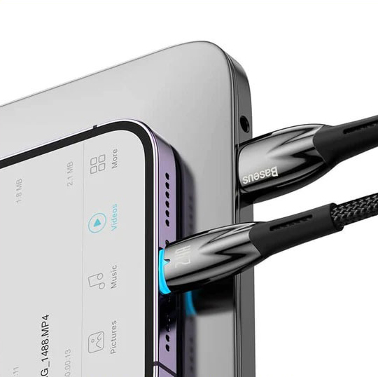 سایر ویژگی هاکابل 2 متری کابل با روکش کنفی بافته شده دارای چراغ انتقال داده و شارژ