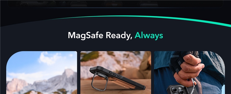 حلقه قدرتمند آهنربایی با نیروی نگهداری ۱,۵۰۰ گرم، شارژ بیسیم سریعتر و آسانتر را ممکن میکند. این ویژگی، سازگاری کامل با تمام لوازم جانبی مگسیف را تضمین میکند.